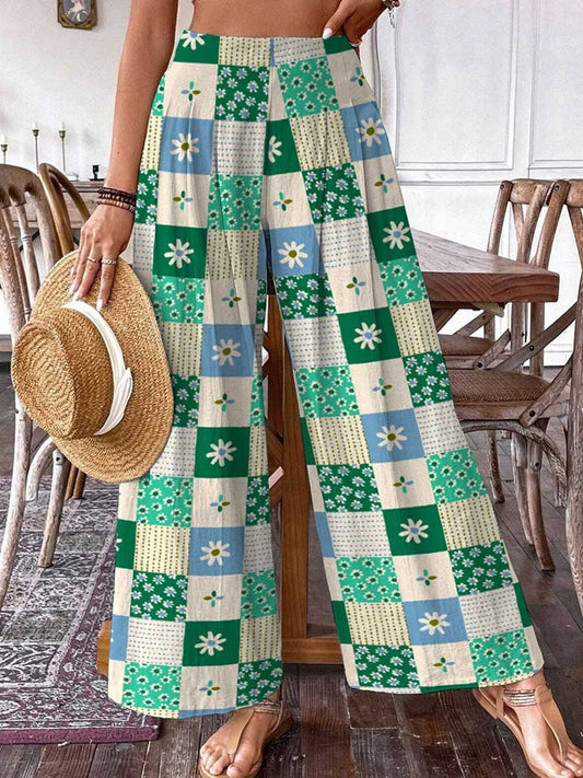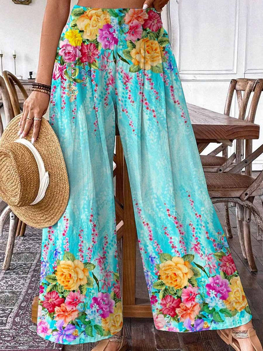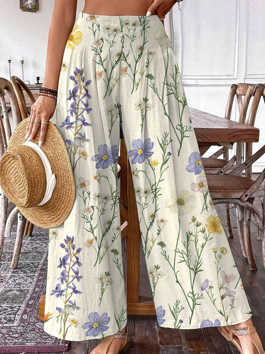 Women's Summer Floral Print Pattern Cotton Wide Leg Pants