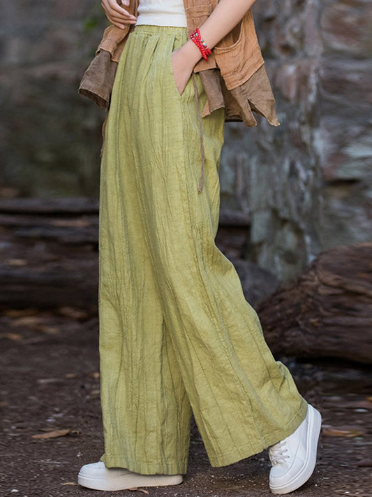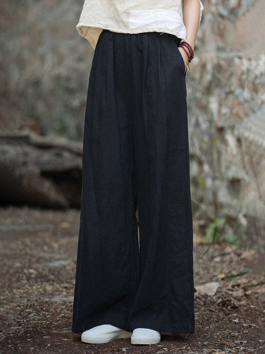 Women's Elegant Simple Floral Pattern Cotton and Linen Pants