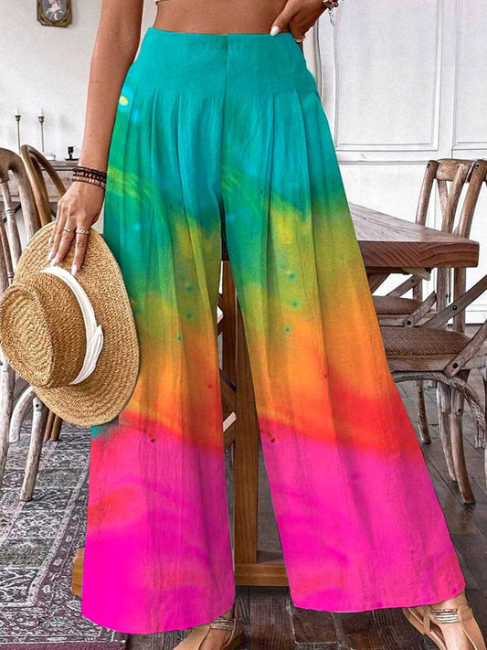 Women's Linen Tie Dye Loose Wide Leg Pants