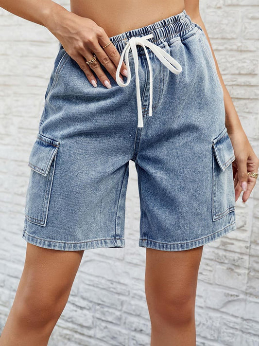 Women's Distressed Lace-up Elastic Waist Denim Shorts