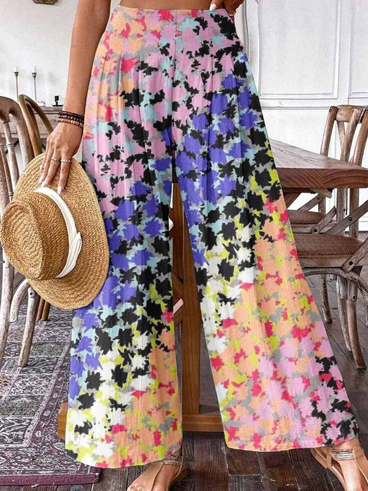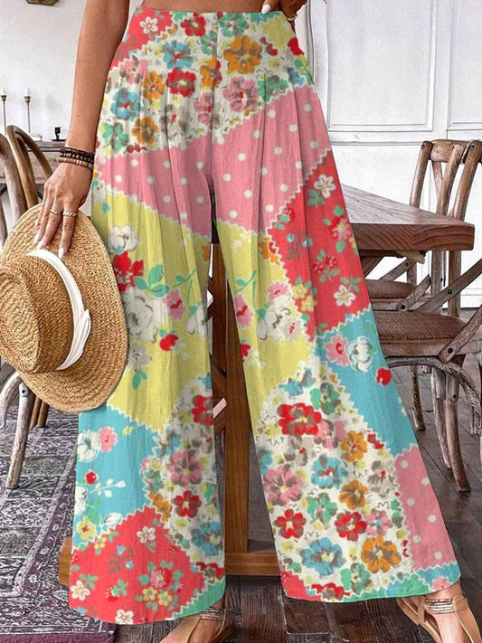 Women's Retro Abstract Geometric Art Flower Wide Leg Pants