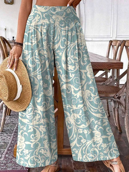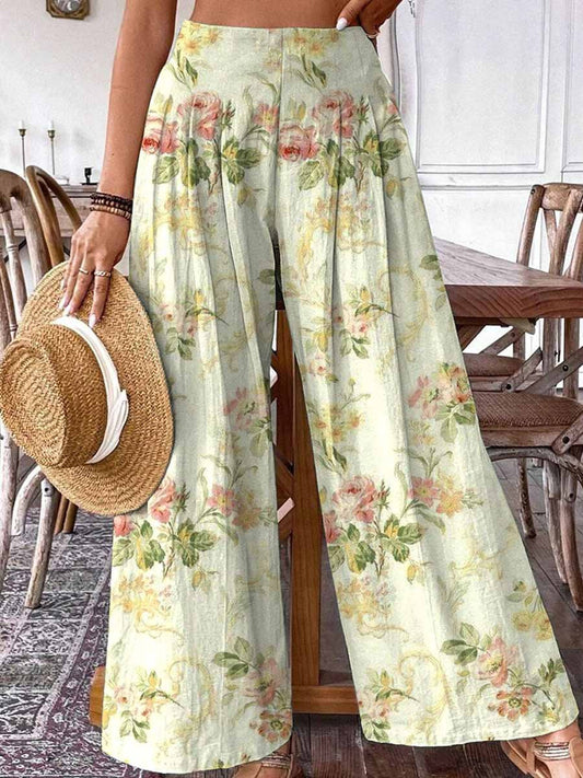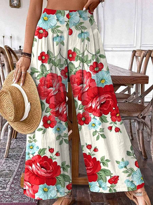 Women's Elegant Simple Floral Pattern Art Flower Wide Leg Pants