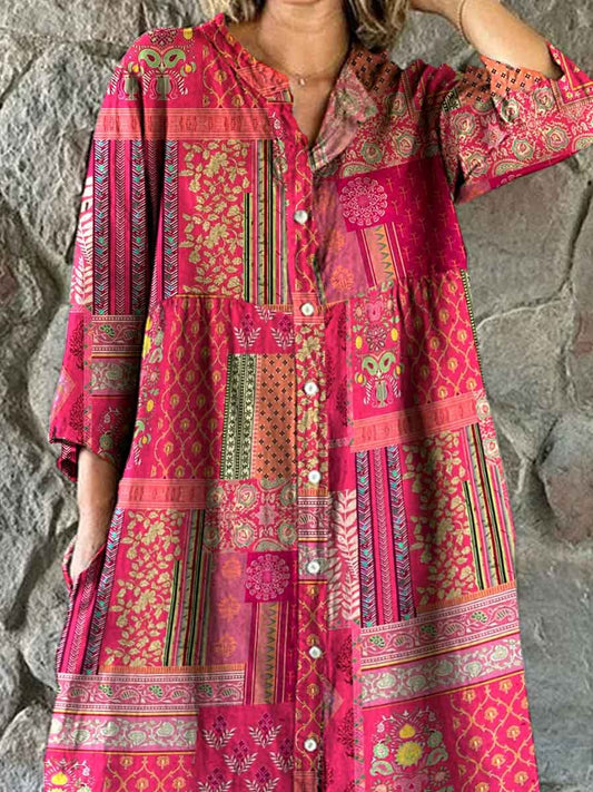 Women's Bohemian Ethnic Geometric Print Cotton And Linen Dress