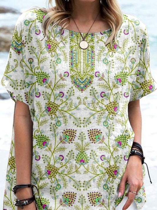 Women's Elegant Boho Geometric Pattern Cotton and Linen Top