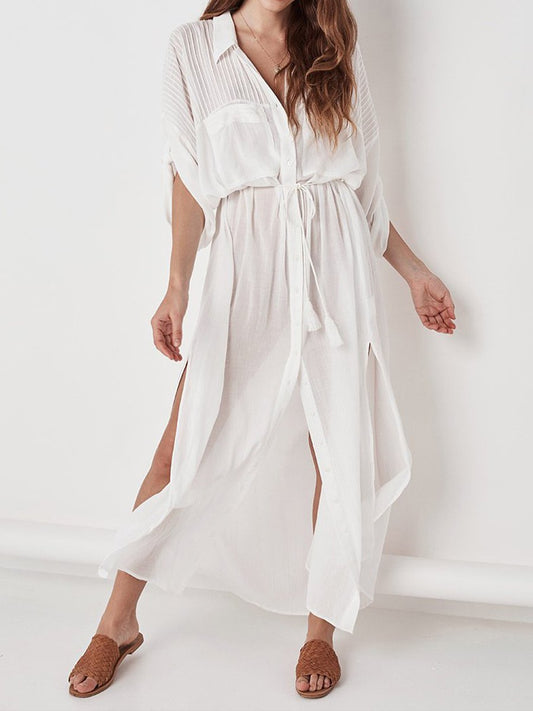 Women's Solid Color Sexy Hollow Beach Bikini Cover Up