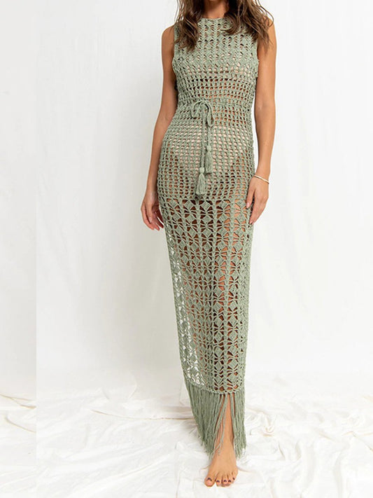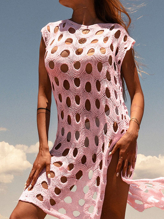 Women's Solid Color Knitted Hollow Resort Beach Dress