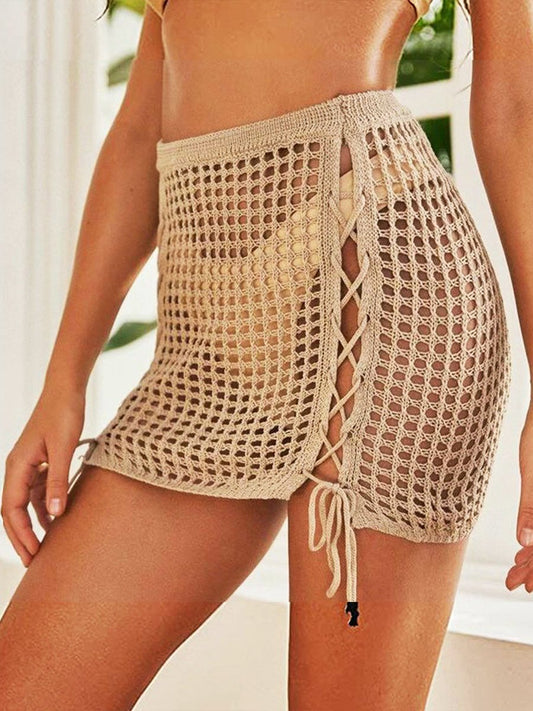 Women's Knitted Hollow Drawstring Bikini Skirt