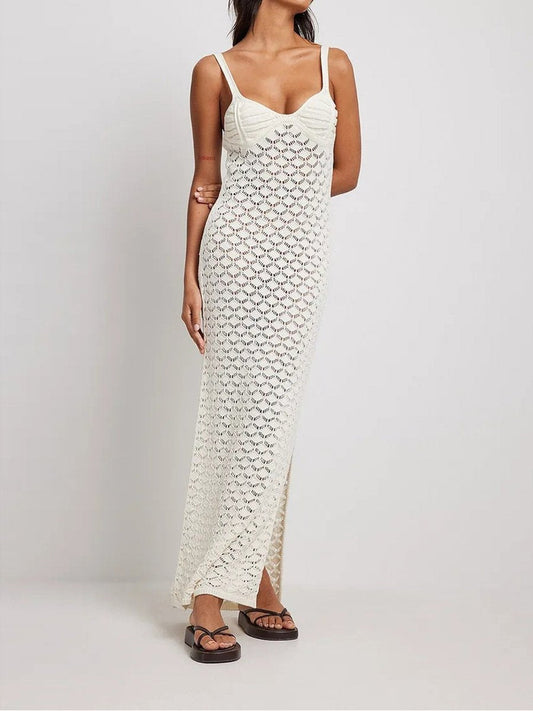 Women's Knitted Hollow Pattern Sling Knitted Skirt
