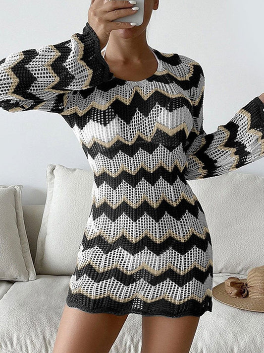 Women's Solid Color Knitted Cutout Bikini Cover Up