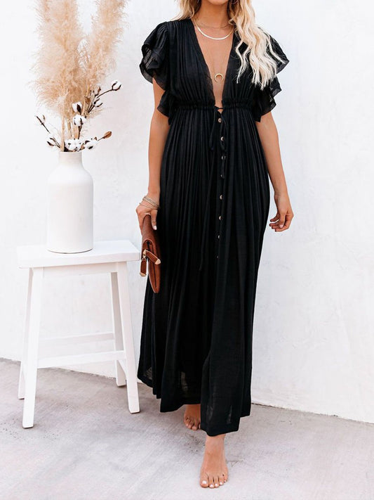 Women's Solid Color Cutout Beach Bikini Cover Up