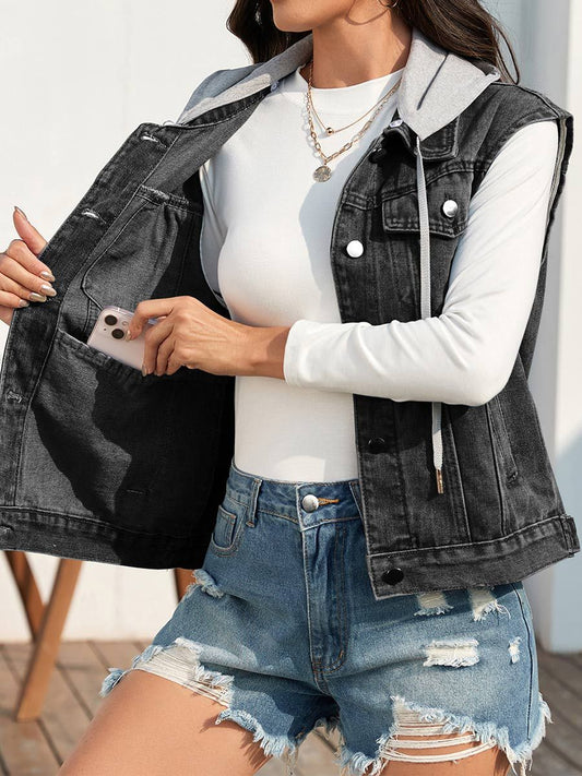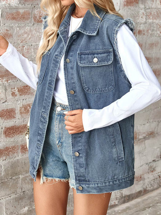 Gilet en denim délavé de style classique pour femme