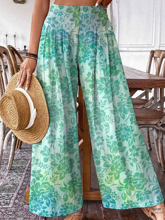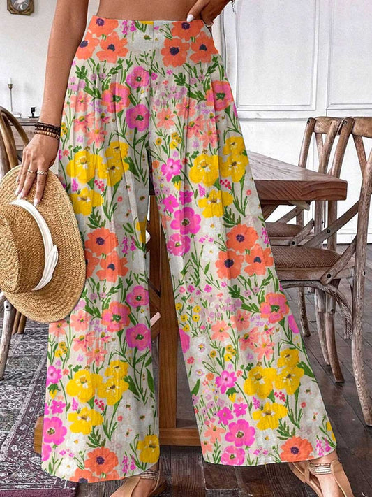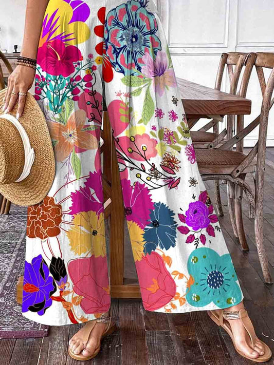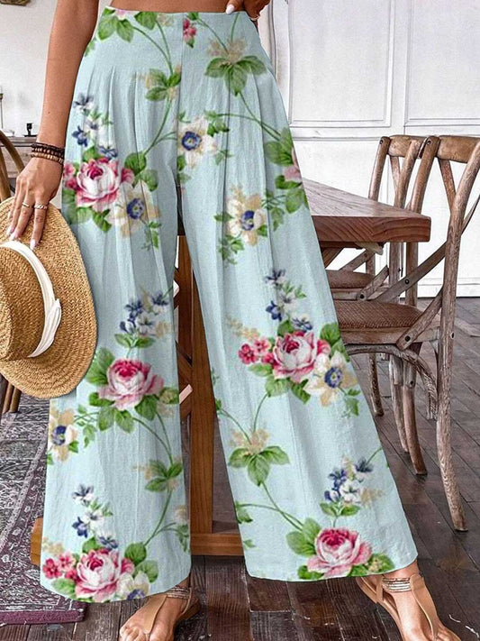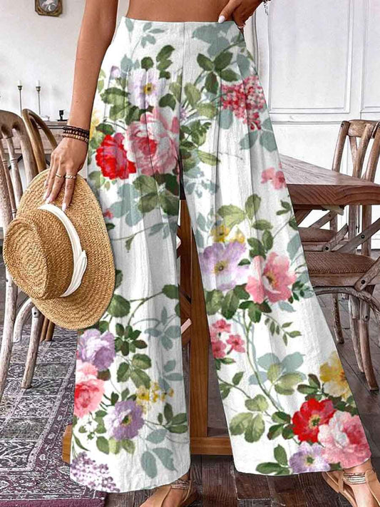 Pantalon en coton et lin à motif floral pastoral élégant pour femmePrix habituel £31.00Prix habituelPrix unitaire par-