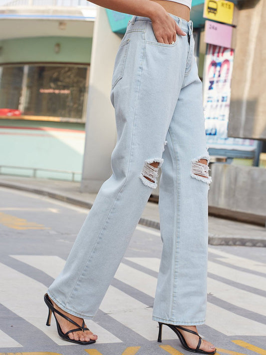 Jean déchiré décontracté de couleur claire pour femmePrix habituel £26.00Prix habituelPrix unitaire par-