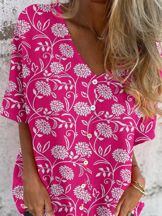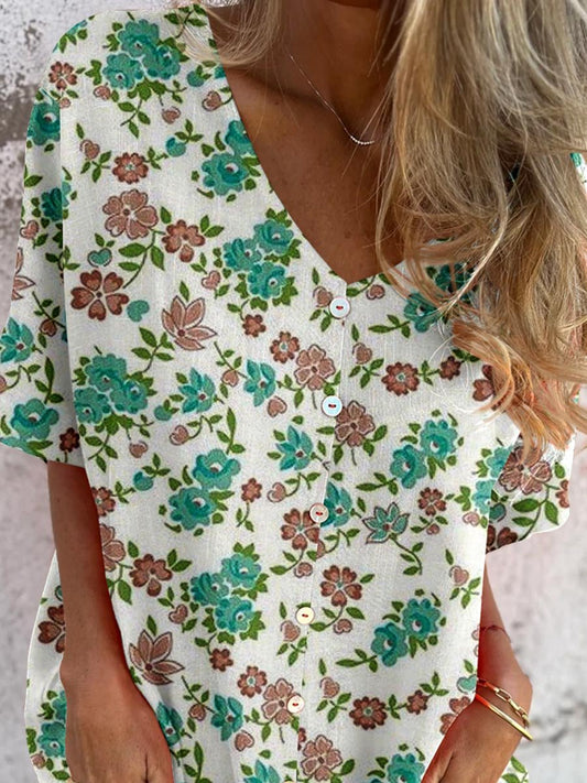 Haut en coton et lin à col en V à motif floral simple pour femmePrix habituel £21.00Prix habituelPrix unitaire par-