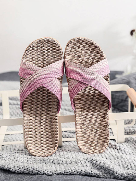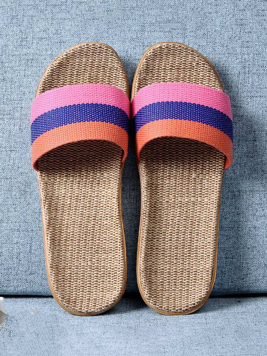 Chaussons d'intérieur antidérapants à semelle épaisse en lin rayé pour femmesPrix habituel £9.00Prix habituelPrix unitaire par-