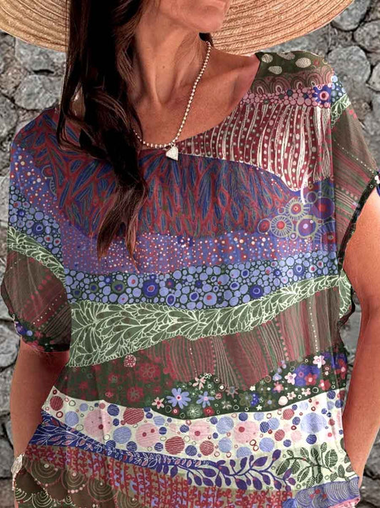 Haut à motif irrégulier à rayures florales pastorales rétro pour femmesPrix habituel £24.00Prix habituelPrix unitaire par-