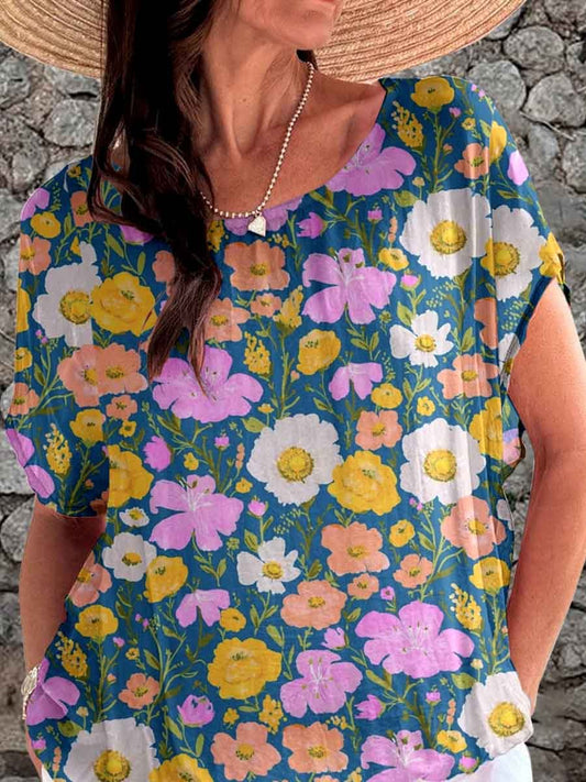 Haut élégant en coton et lin à imprimé floral pour femmePrix habituel £24.00Prix habituelPrix unitaire par-