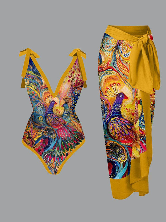 Jupe longue en mousseline de soie à imprimé rétro pour maillot de bain pour femmePrix habituel £30.00Prix habituelPrix unitaire par-