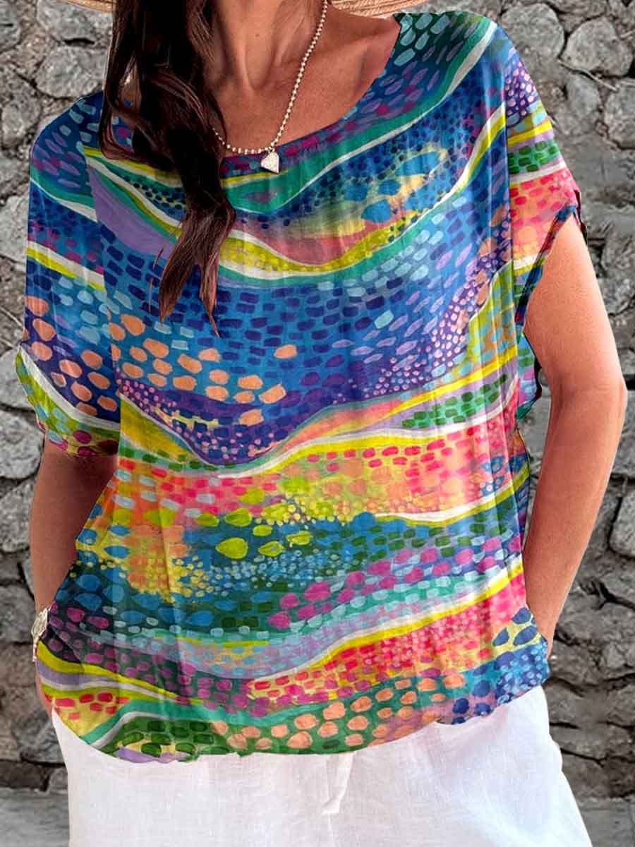 Haut à motif de coups de pinceau colorés et amusants pour femmes
