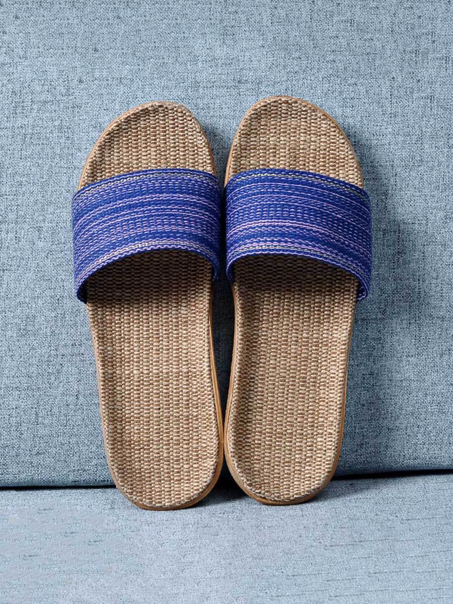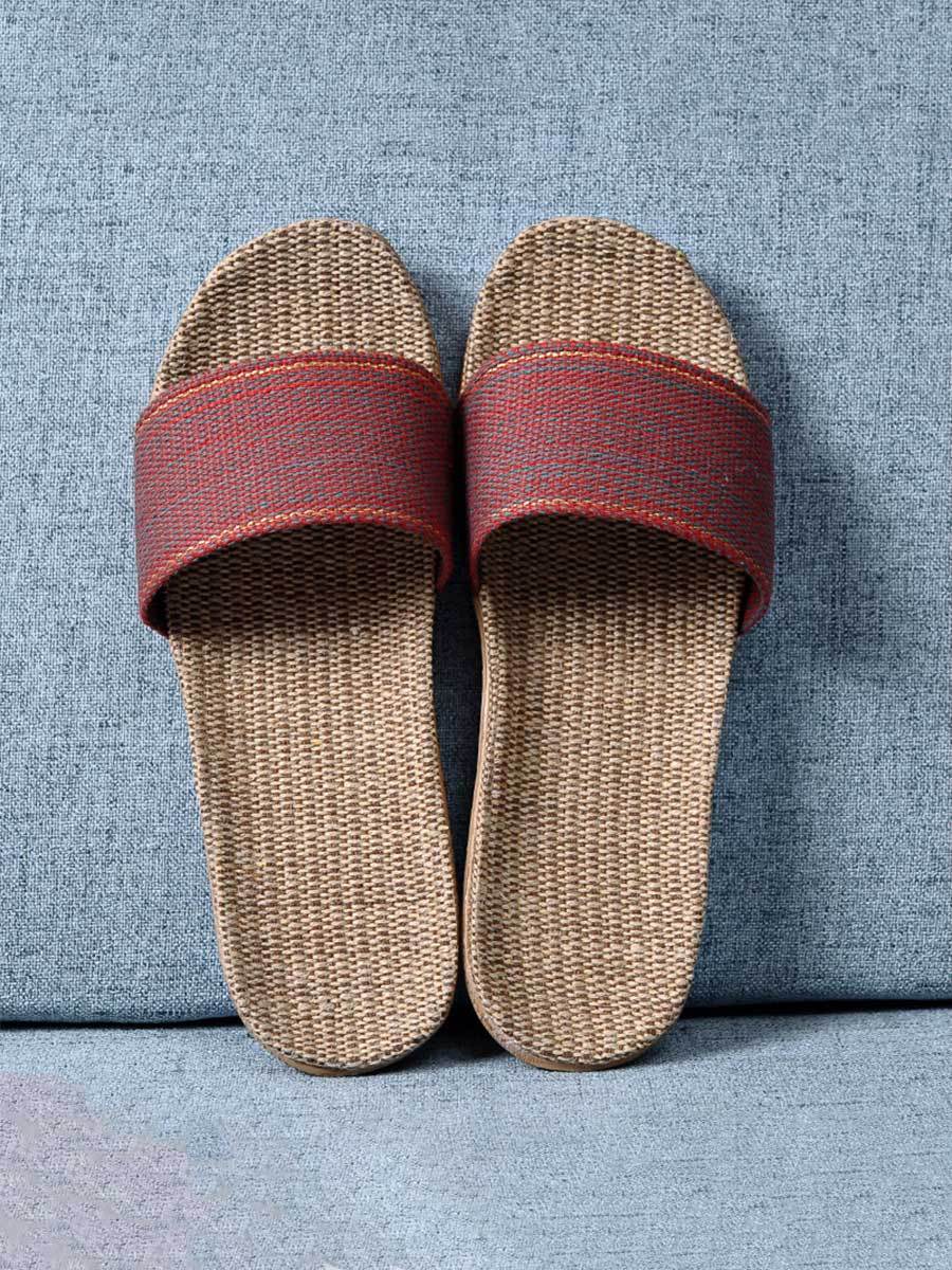 Chaussons antidérapants en lin pour femmes, semelle épaisse