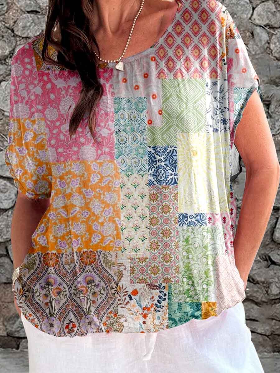 Haut à imprimé géométrique pastoral pour femme