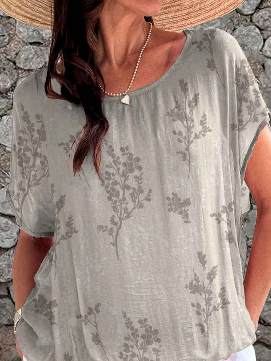 Haut simple et élégant à imprimé floral décoratif pour femme