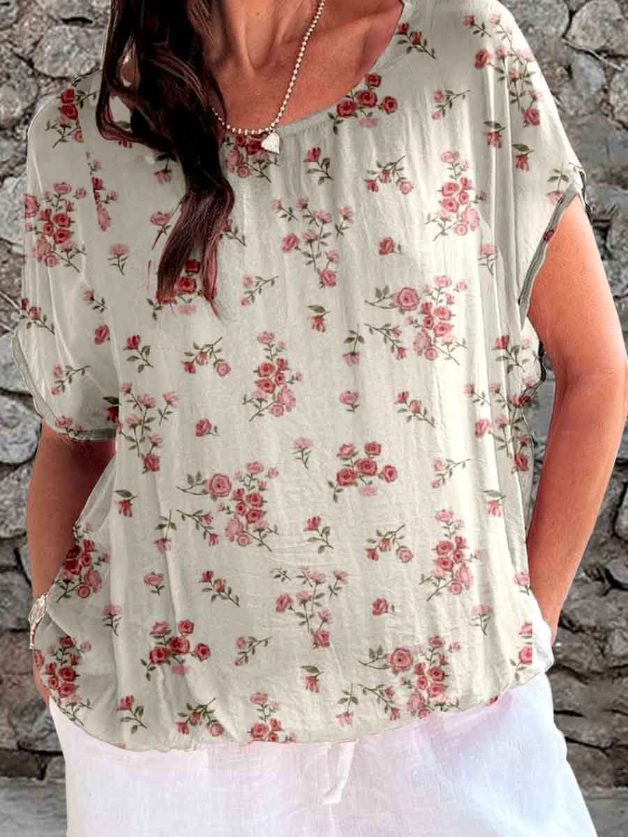 Haut simple et élégant à imprimé floral décoratif pour femme