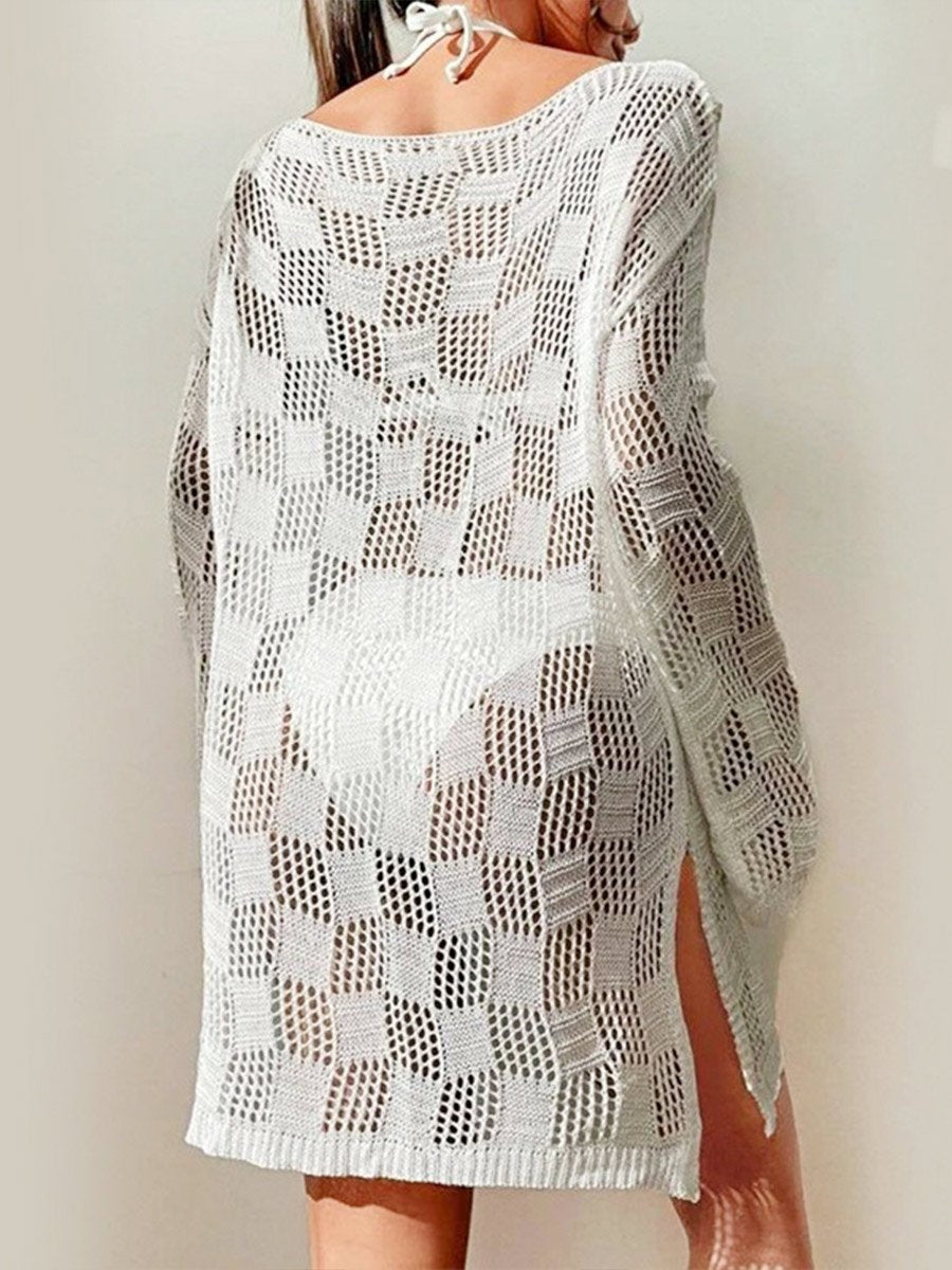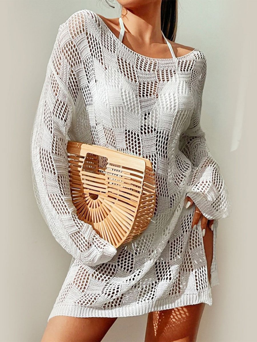 Cache-maillot de bain en tricot de couleur unie pour femme