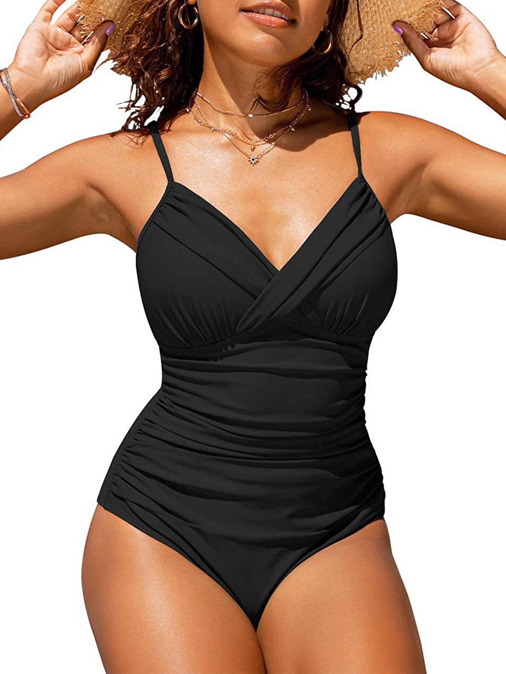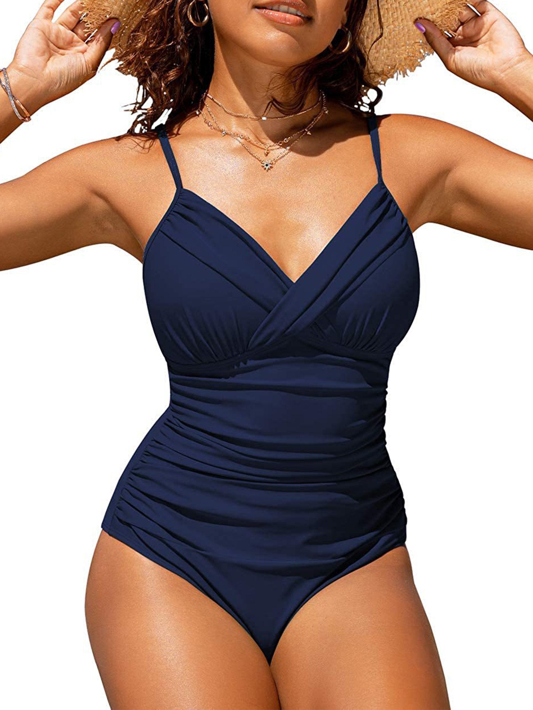 Maillot de bain une pièce à imprimé croisé de couleur unie pour femme