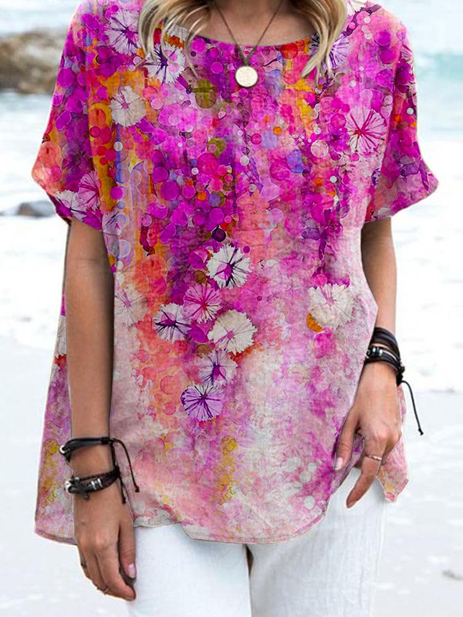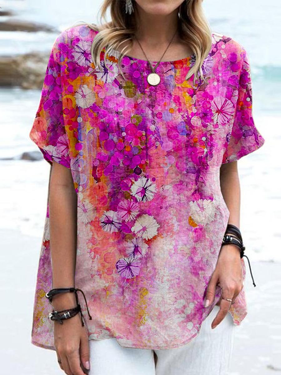 Women's Artistic Color Pattern Printed Cotton And Linen Top