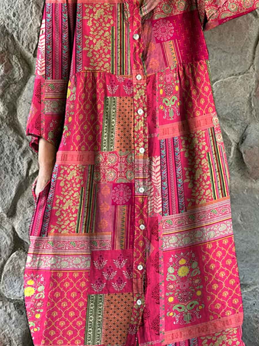 Women's Bohemian Ethnic Geometric Print Cotton And Linen Dress
