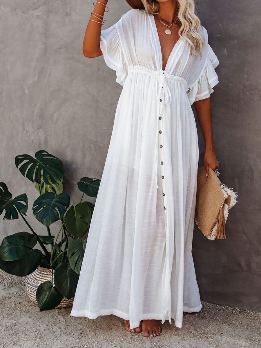 Women's Buttoned Waist Cord Sun Protection Shirt