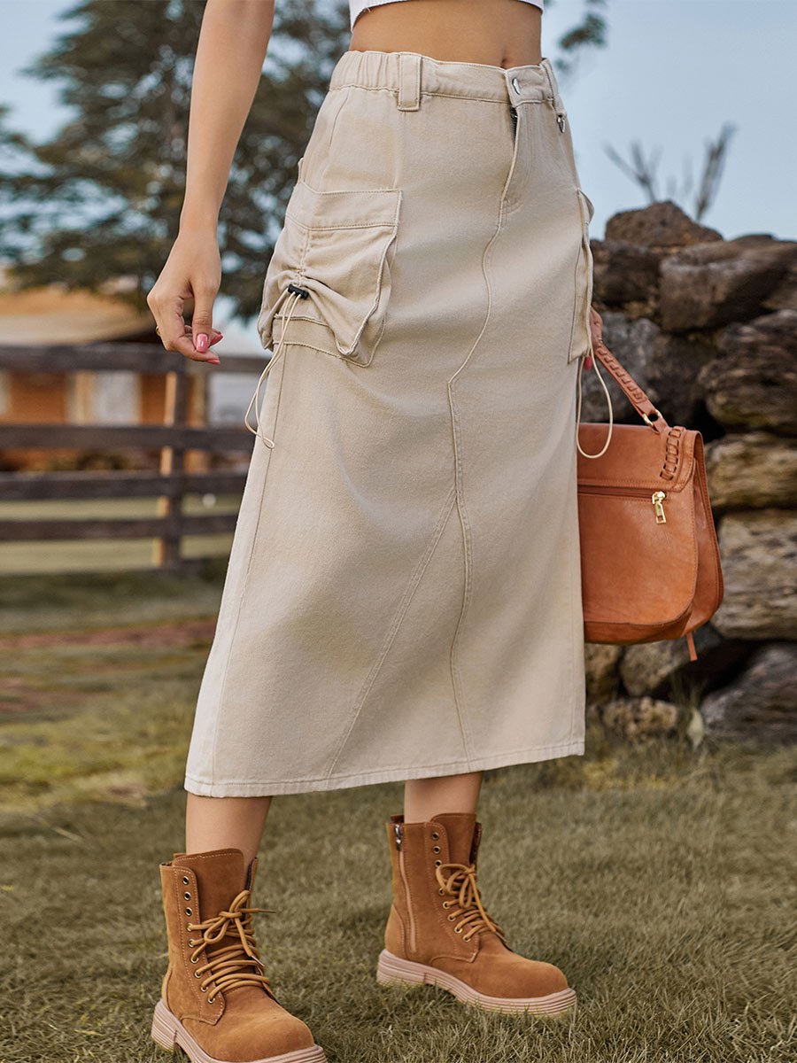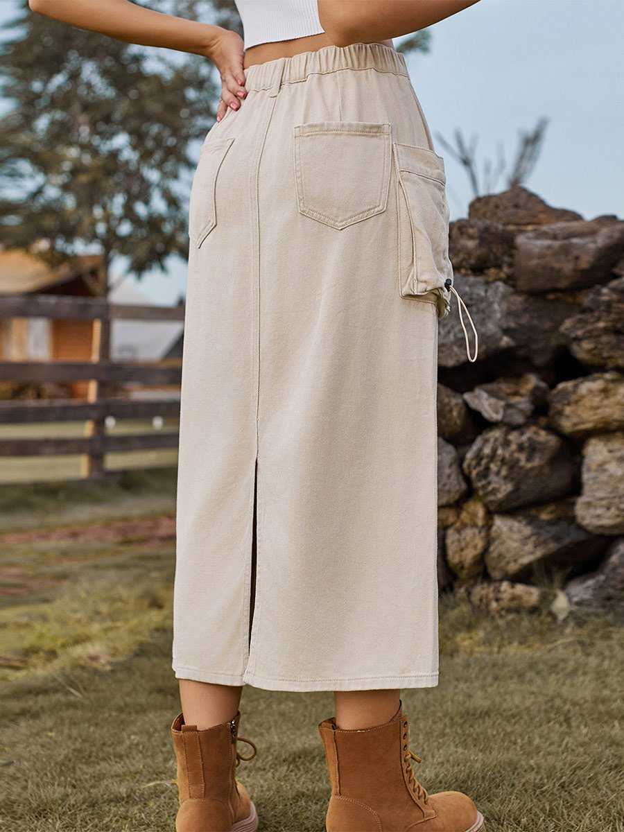 Women's Denim Workwear Casual Midi Skirt