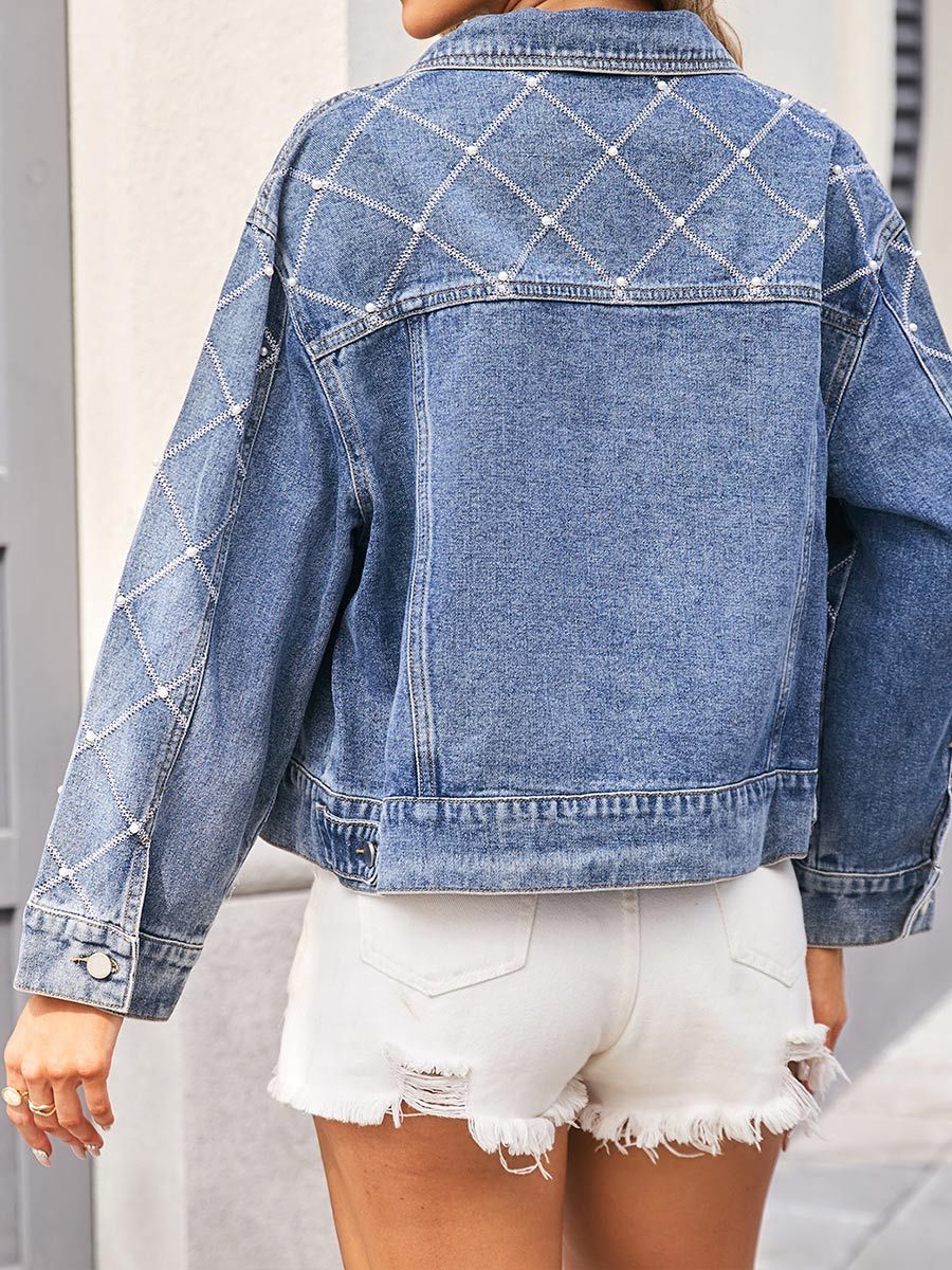 Women's Distressed Embroidered Beading Denim Jacket Top
