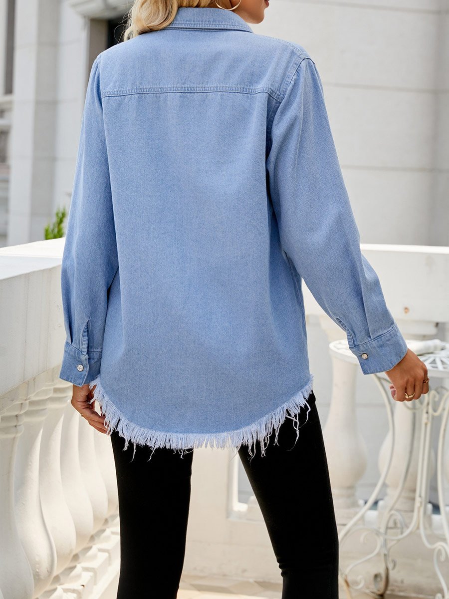 Women's distressed raw edge denim shirt