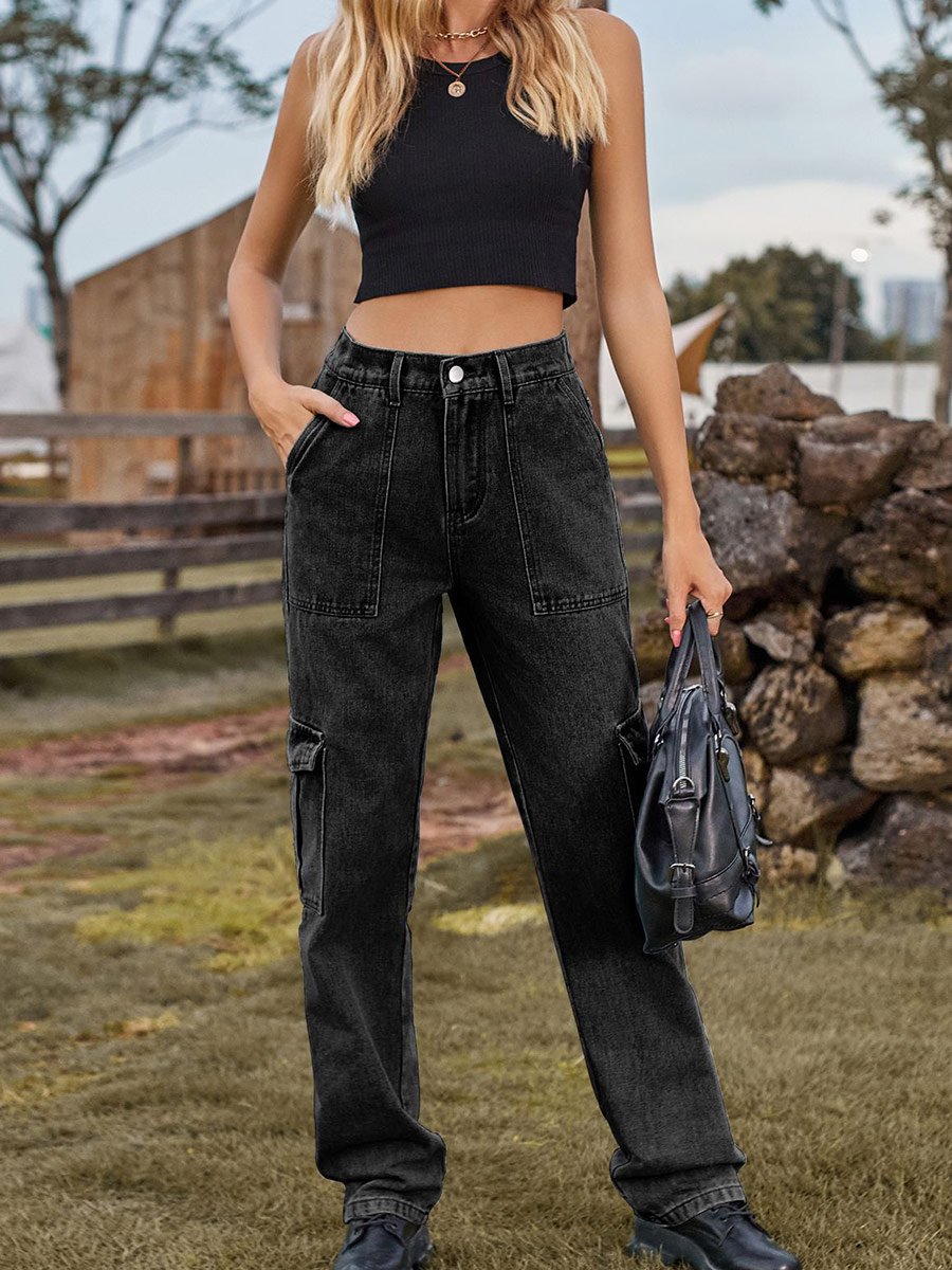 Women's Distressed Semi-Elastic Denim Cargo Pants