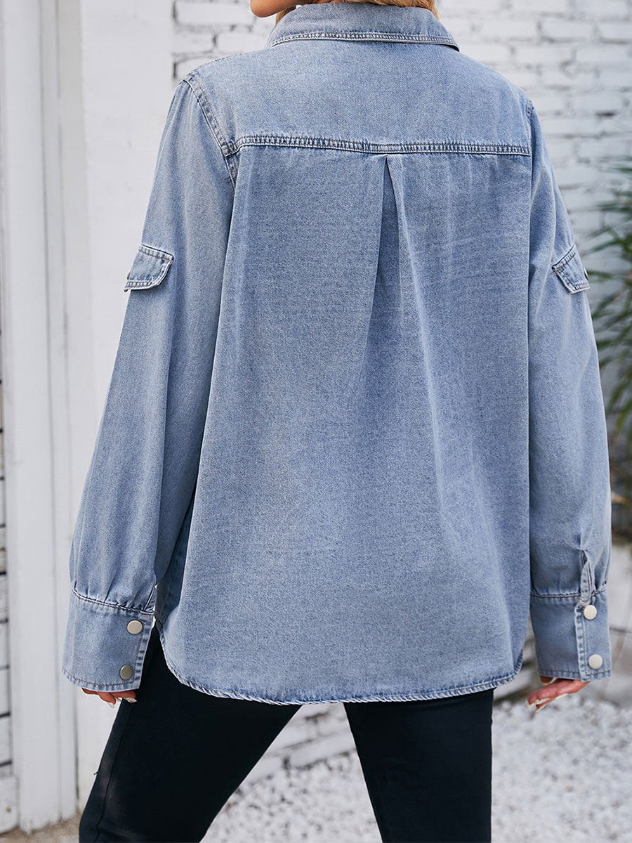 Women's Distressed Snap Button Long Sleeve Denim Shirt