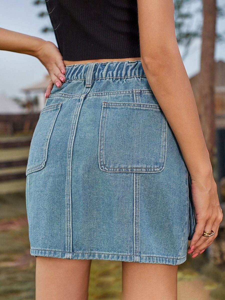 Women's Distressed Workwear Denim Skirt