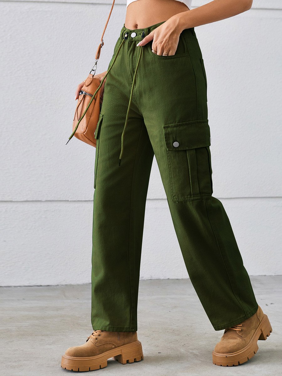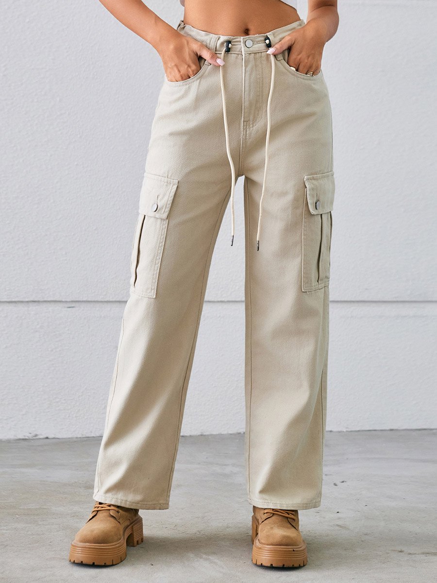 Women's Drawstring Work Fit Washed Jeans