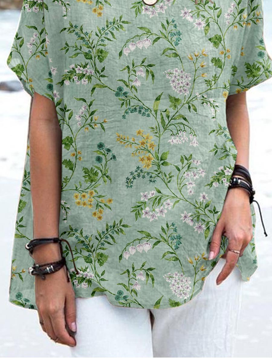 Women's Elegant Floral Cotton and Linen Top