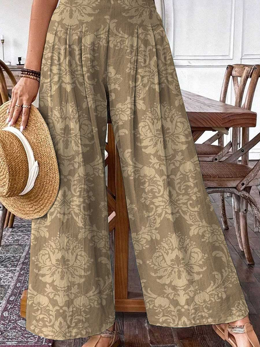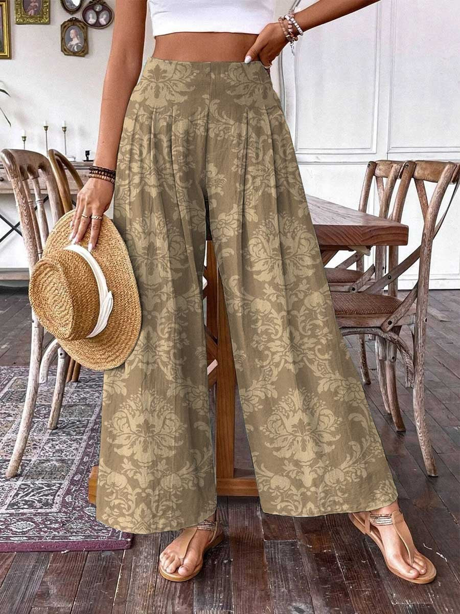 Women's Elegant Simple Floral Pattern Cotton and Linen Pants