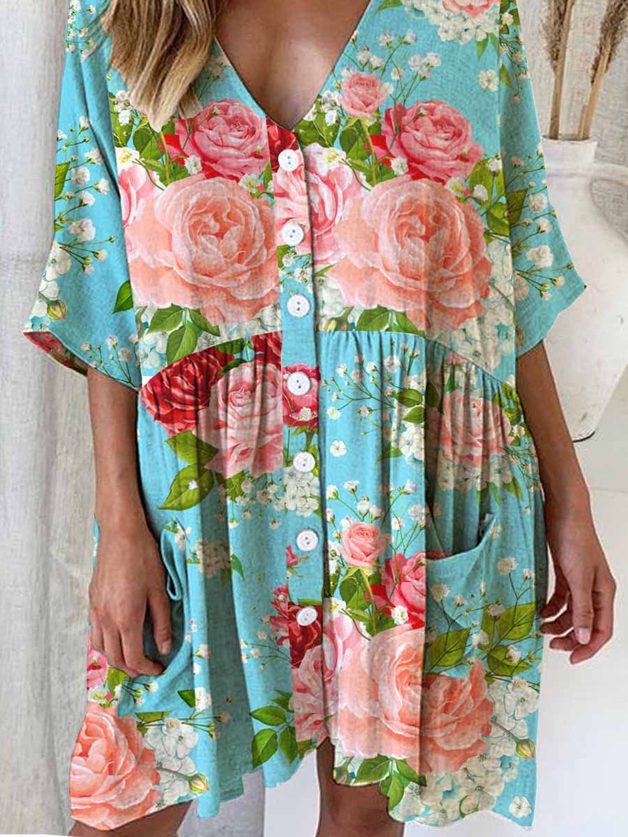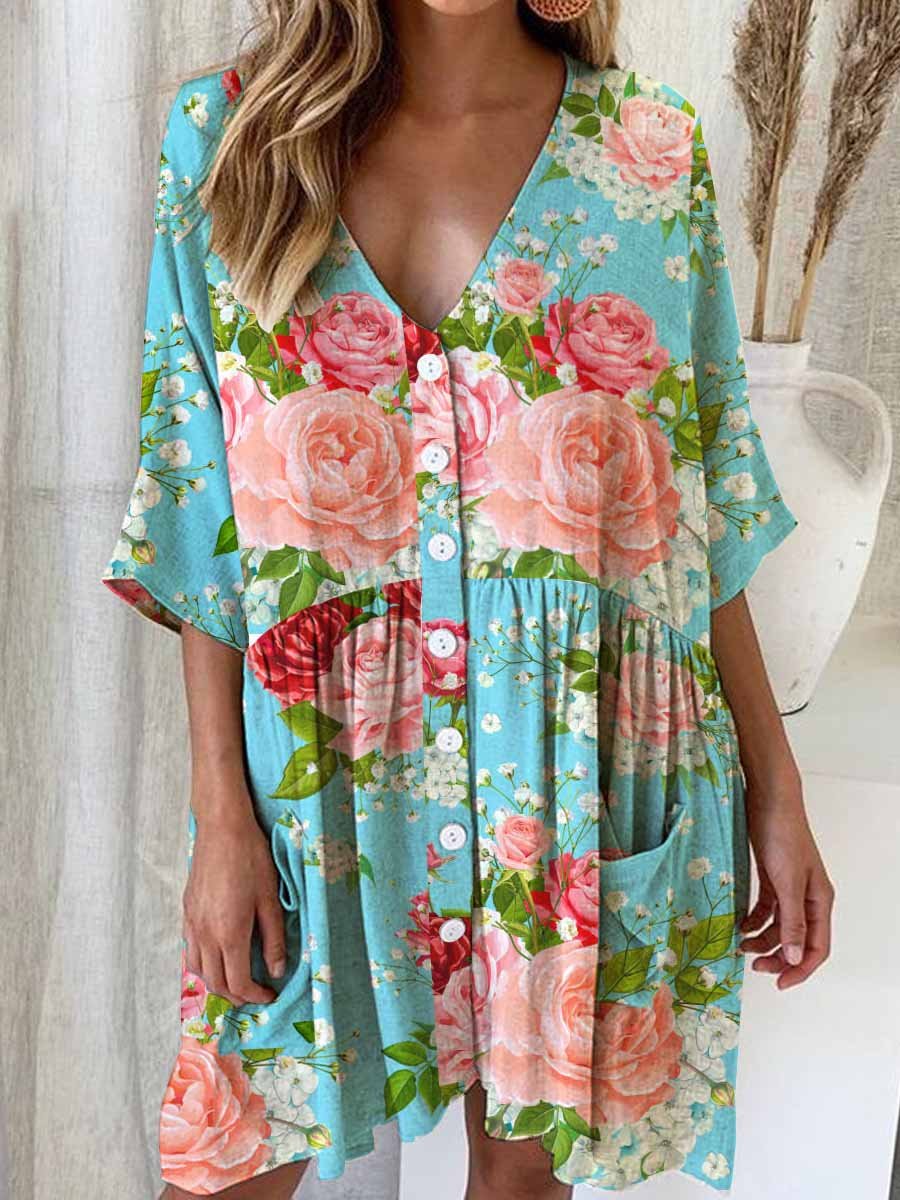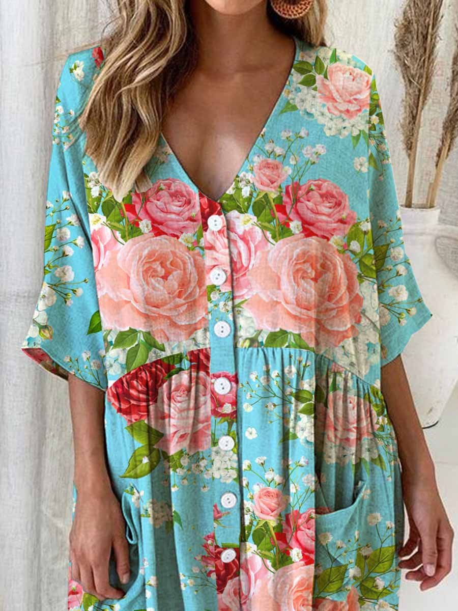 Women's Elegant Simple Rose Floral Pattern Dress