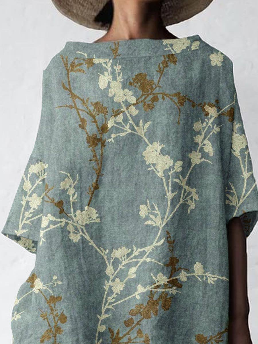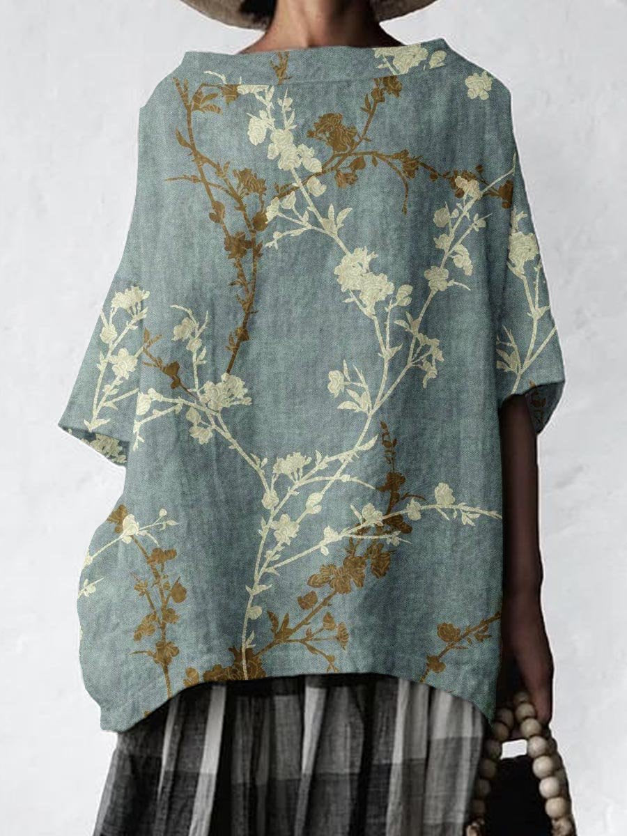 Women's Elegant Vintage Floral Pattern Cotton and Linen Top