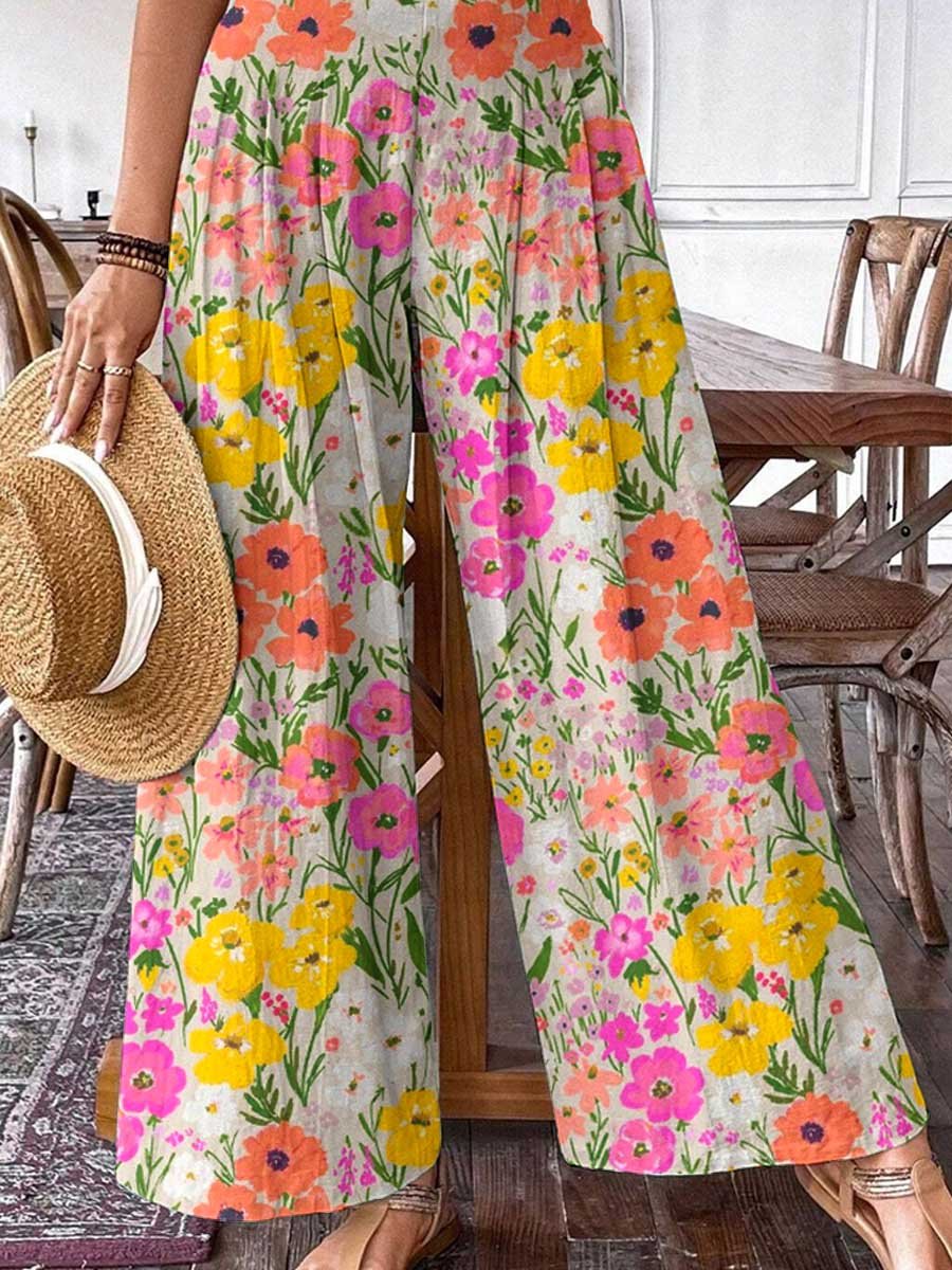 Women's Floral Print Graphic Cotton Wide Leg Pants