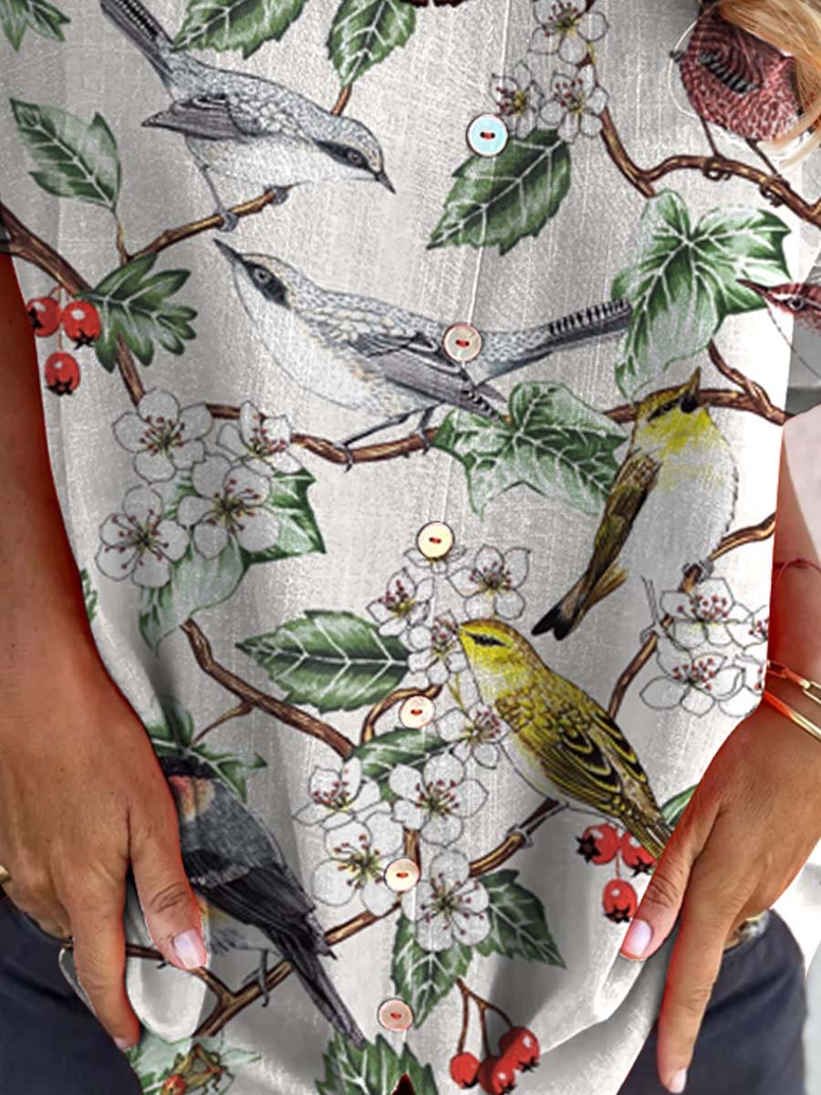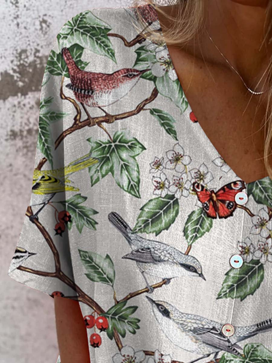 Women's Hawthorn Art Printing Casual Cotton V-neck Top