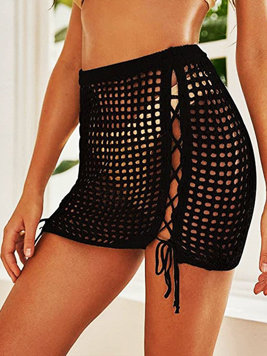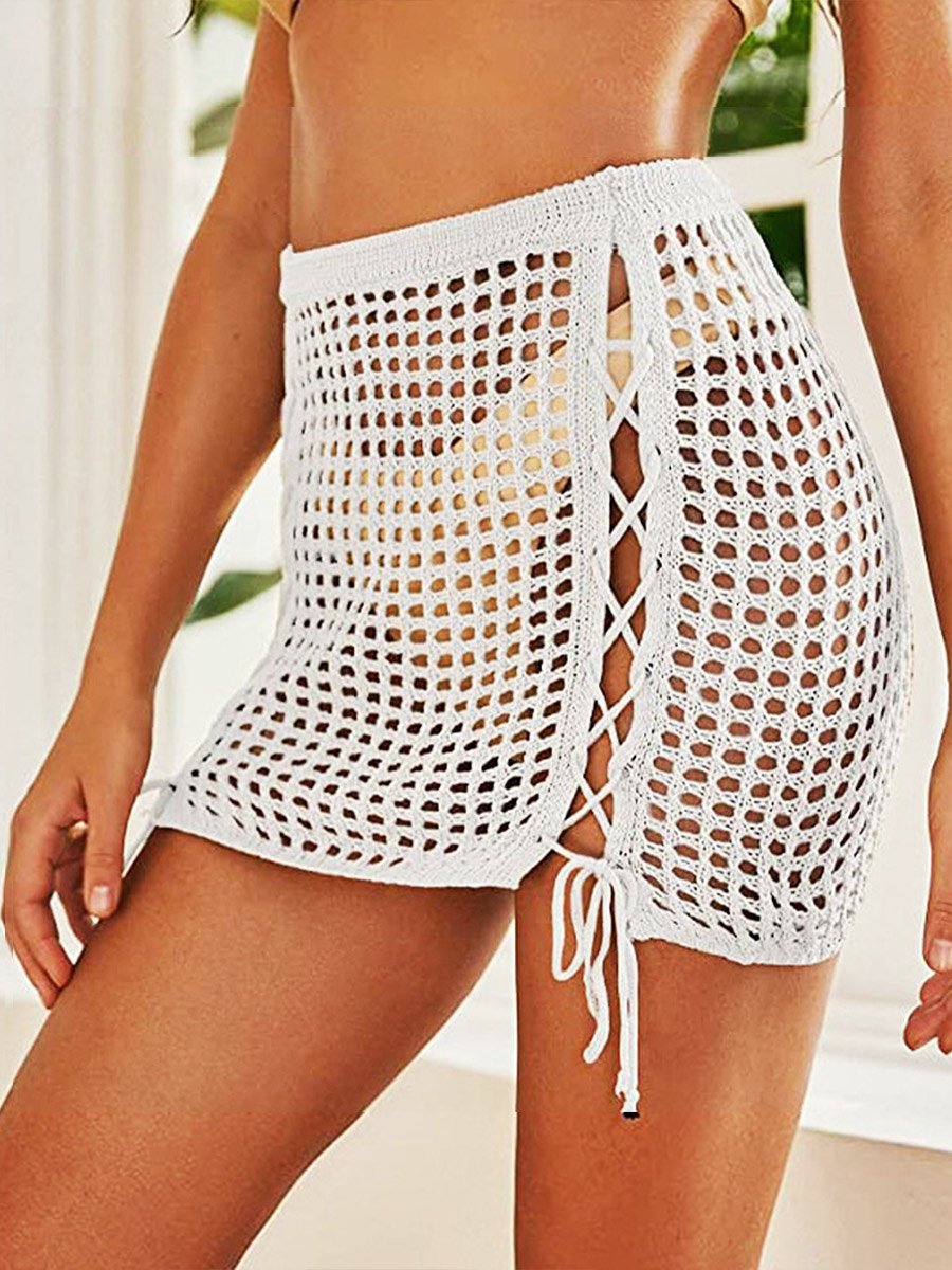 Women's Knitted Hollow Drawstring Bikini Skirt