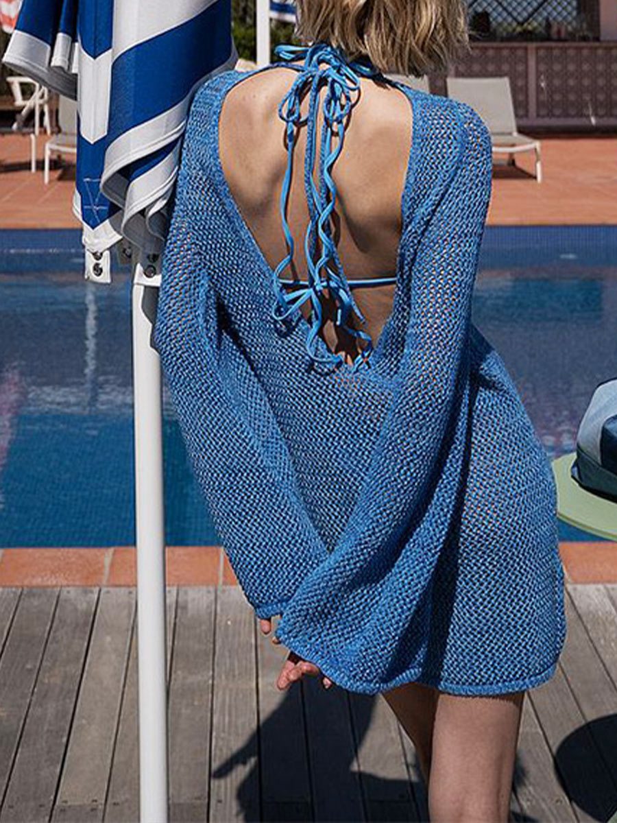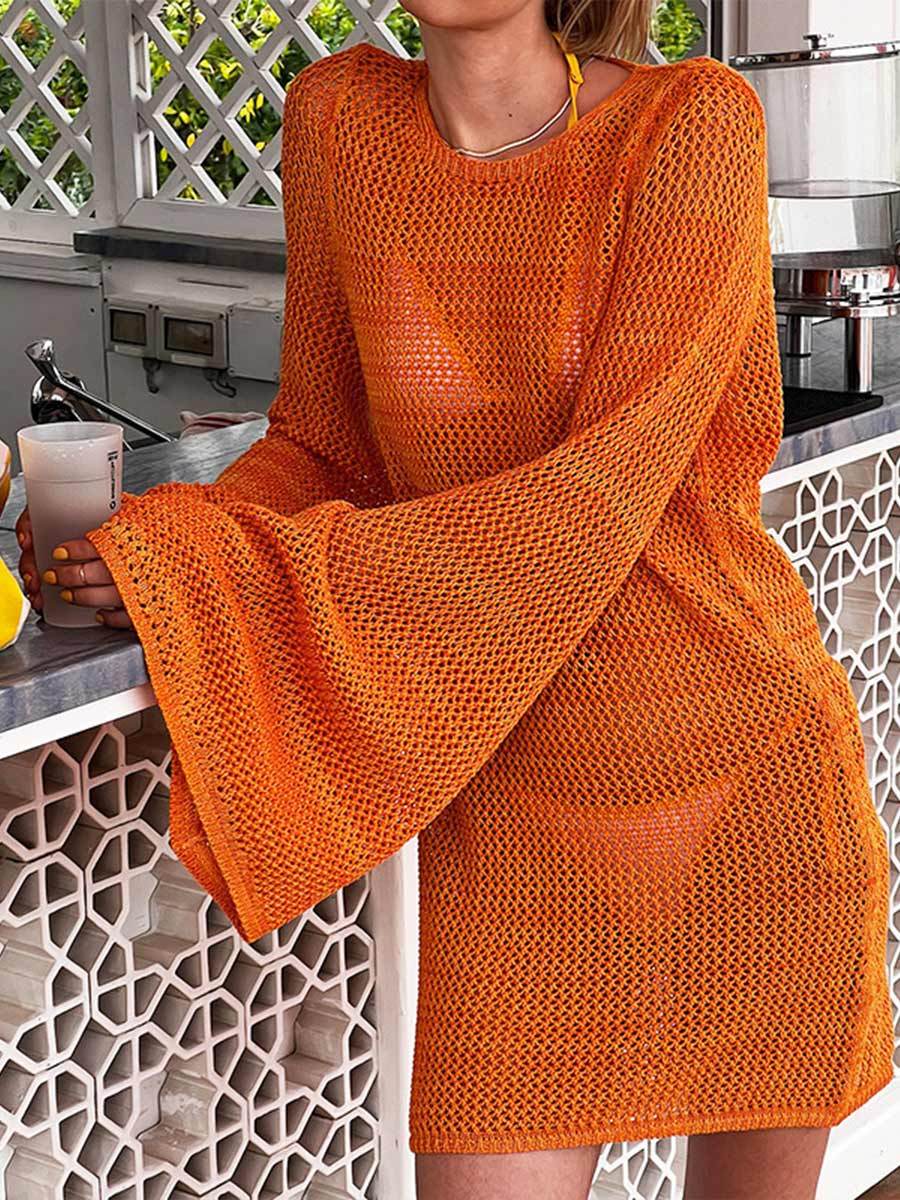 Women's Knitted Loose Dolman Sleeve Beach Dress