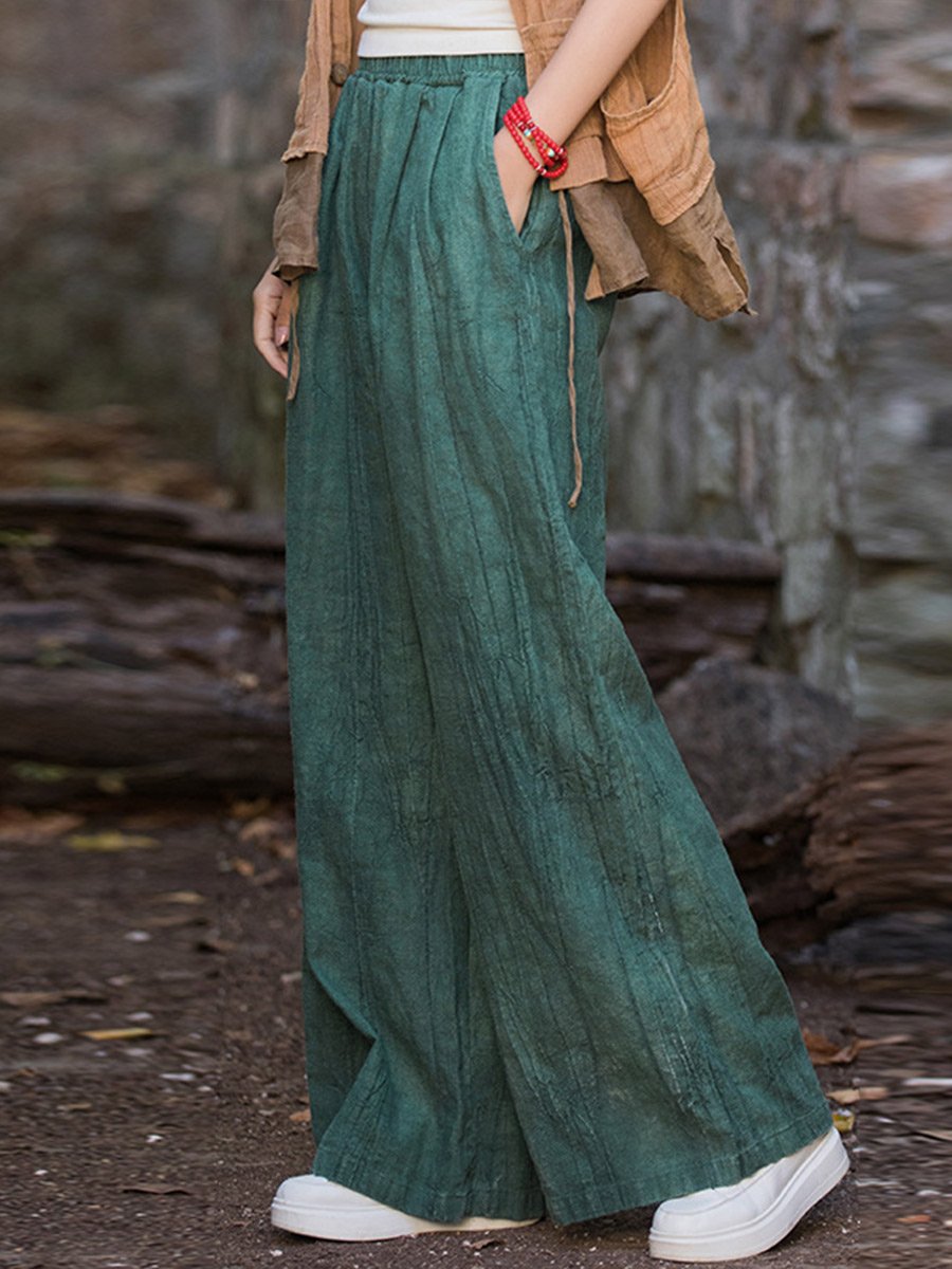 Women's Linen Tie Dye Loose Wide Leg Pants