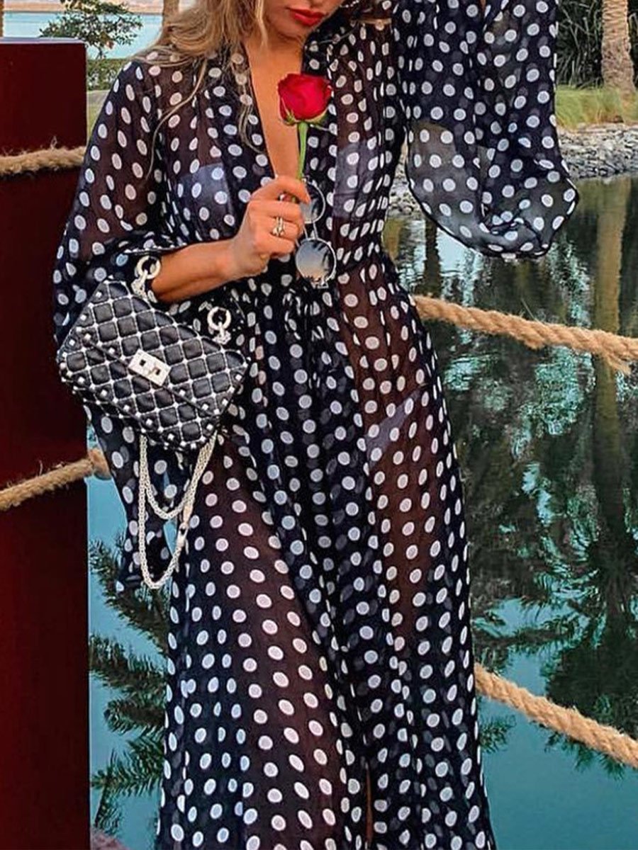 Women's Loose Chiffon Polka Dot Beach Cover Up