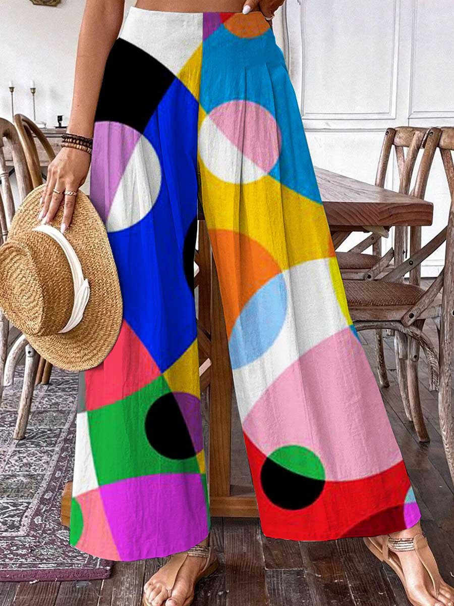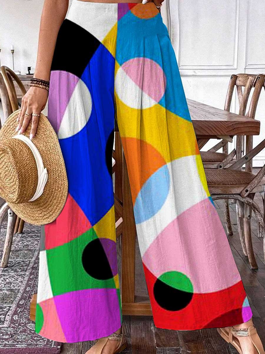 Women's Pop Art Geometric Rainbow Color Pattern Cotton And Linen Pants